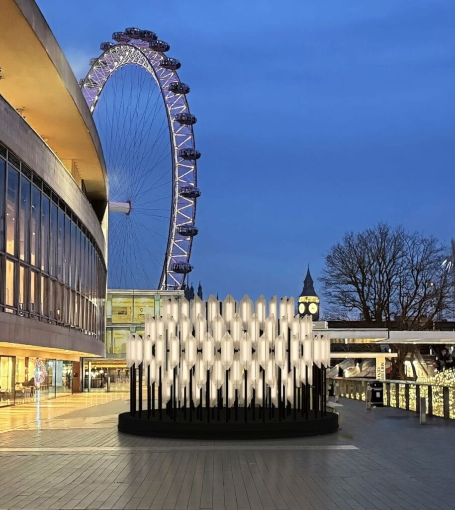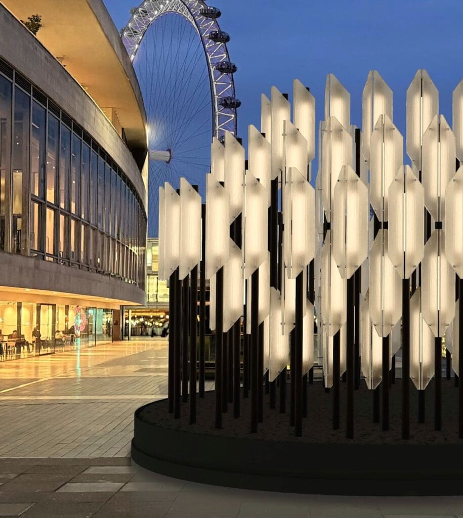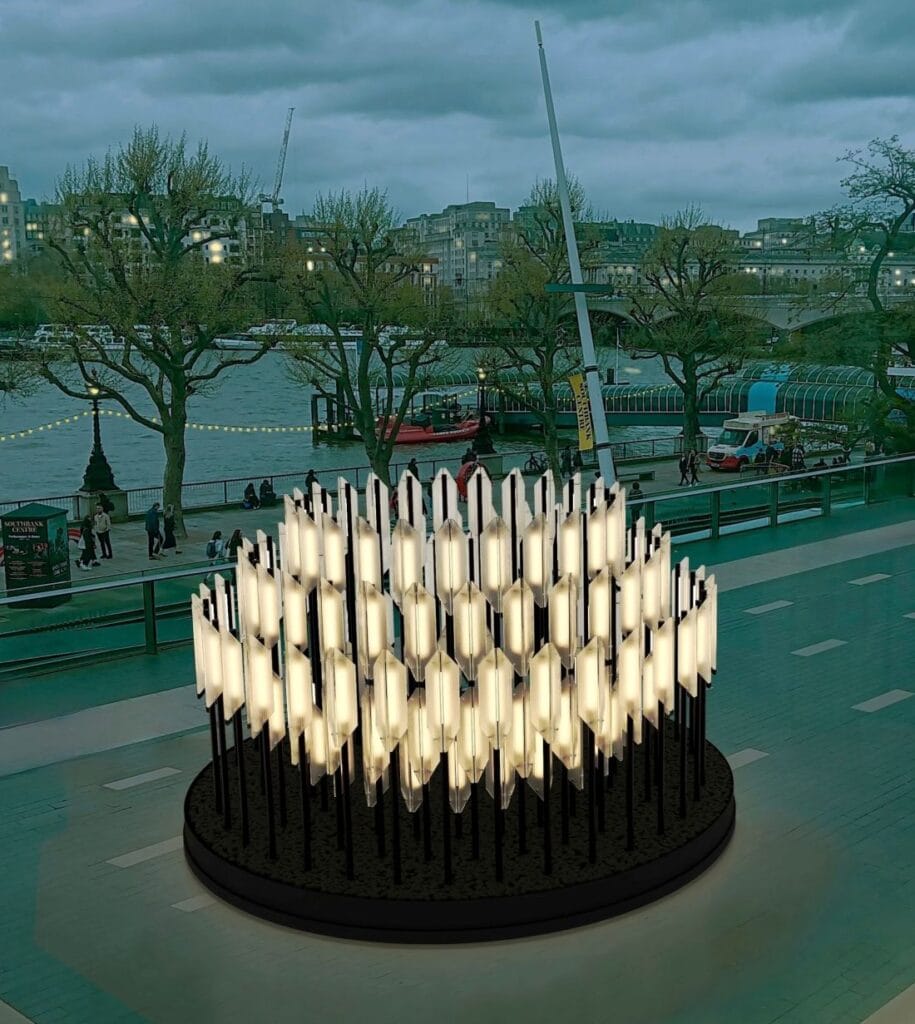 Beacon was born from the desire to create a large-scale sculptural outdoor lighting installation inspired by its surroundings. Designer Lee Broom drew inspiration from the iconic Royal Festival Hall, the historic Victorian Dolphin Street Lamps, and the board-marked concrete of the Hayward Gallery — all located on London’s Southbank. These architectural and historical references are deeply embedded in the spirit of the final work.