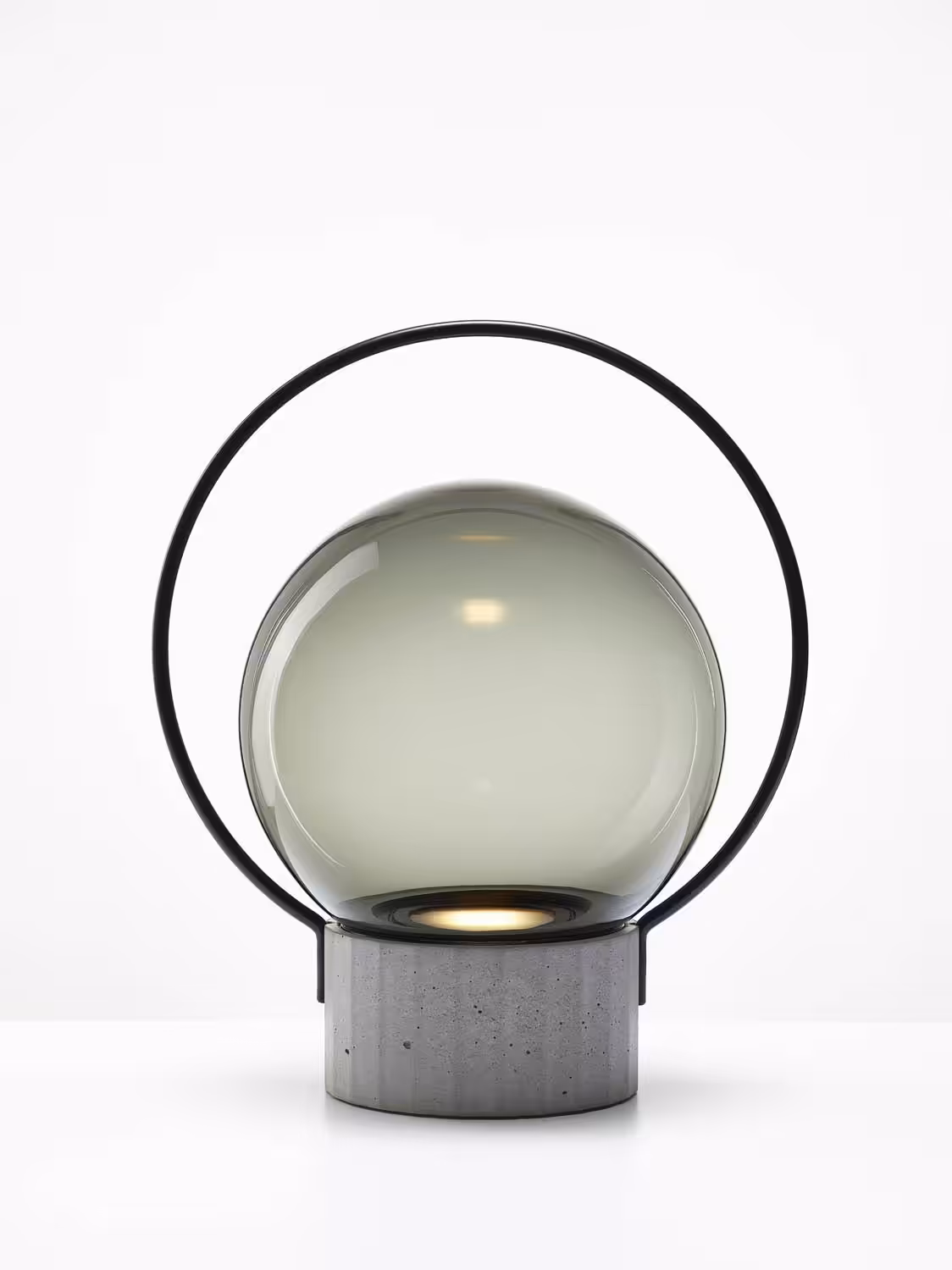 The sphere as a timeless and perfect shape whose allure never ceases to capture the imagination. Handblown glass anchored in a raw, almost brutalist concrete base is an excellent match for modern architecture, but it can also be used to great effect when set in contrast with historical architecture. Sfera Portable is a stylish atmospheric lighting object designed for both outdoor and indoor use. Thanks to its simple construction, the light can be easily picked up and moved to change the ambience of any space.