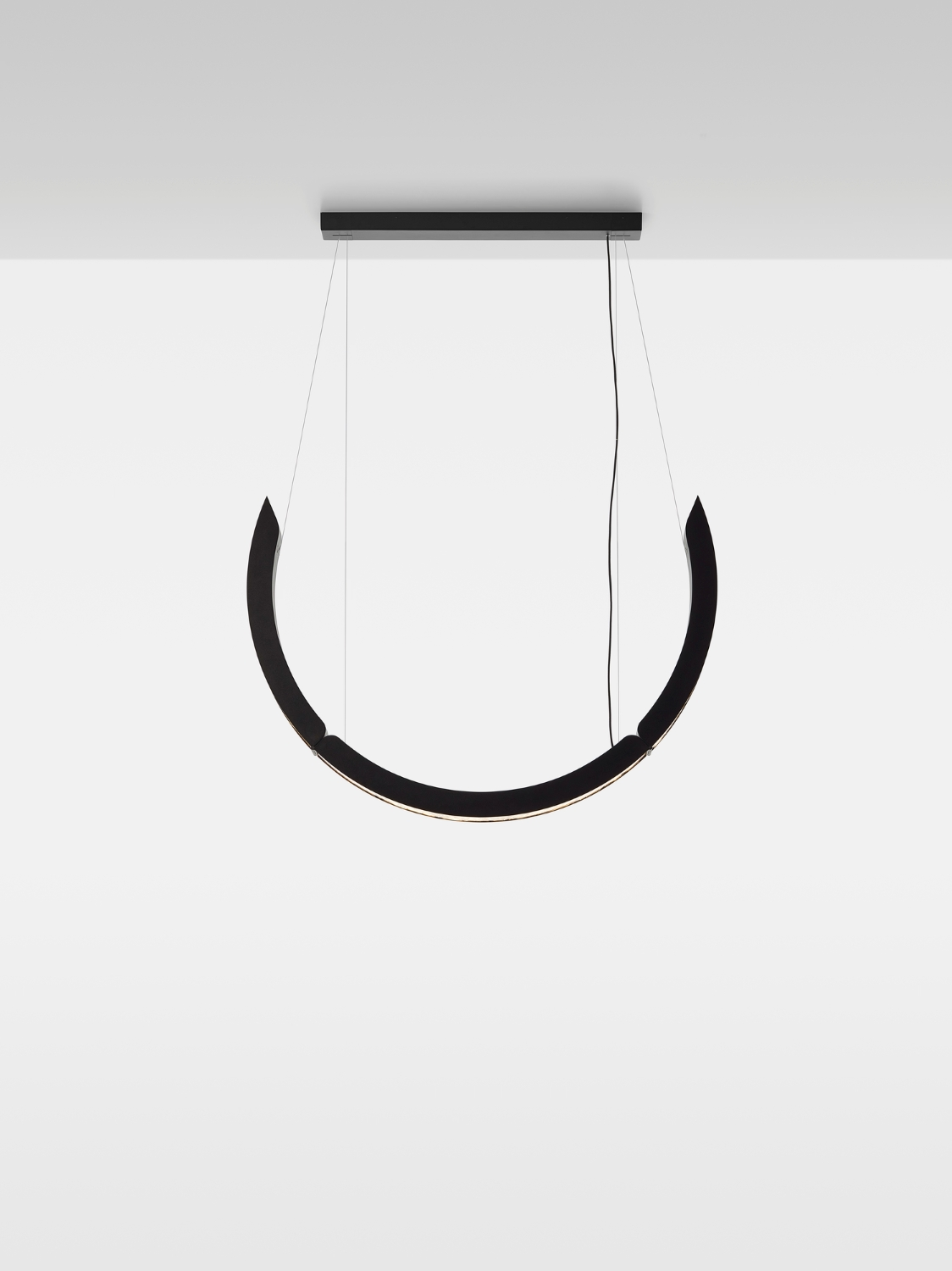 The glass is set in elegant metal frames crafted from aluminium, which ensures outstanding structural integrity while reducing the overall weight of the light. Illumination is provided by flexible LEDs that follow the curvature of the arches, underscoring the intrinsic aesthetic beauty of the BROKISGLASS and effecting a charming diffusion of light no matter what configuration the piece is installed in.