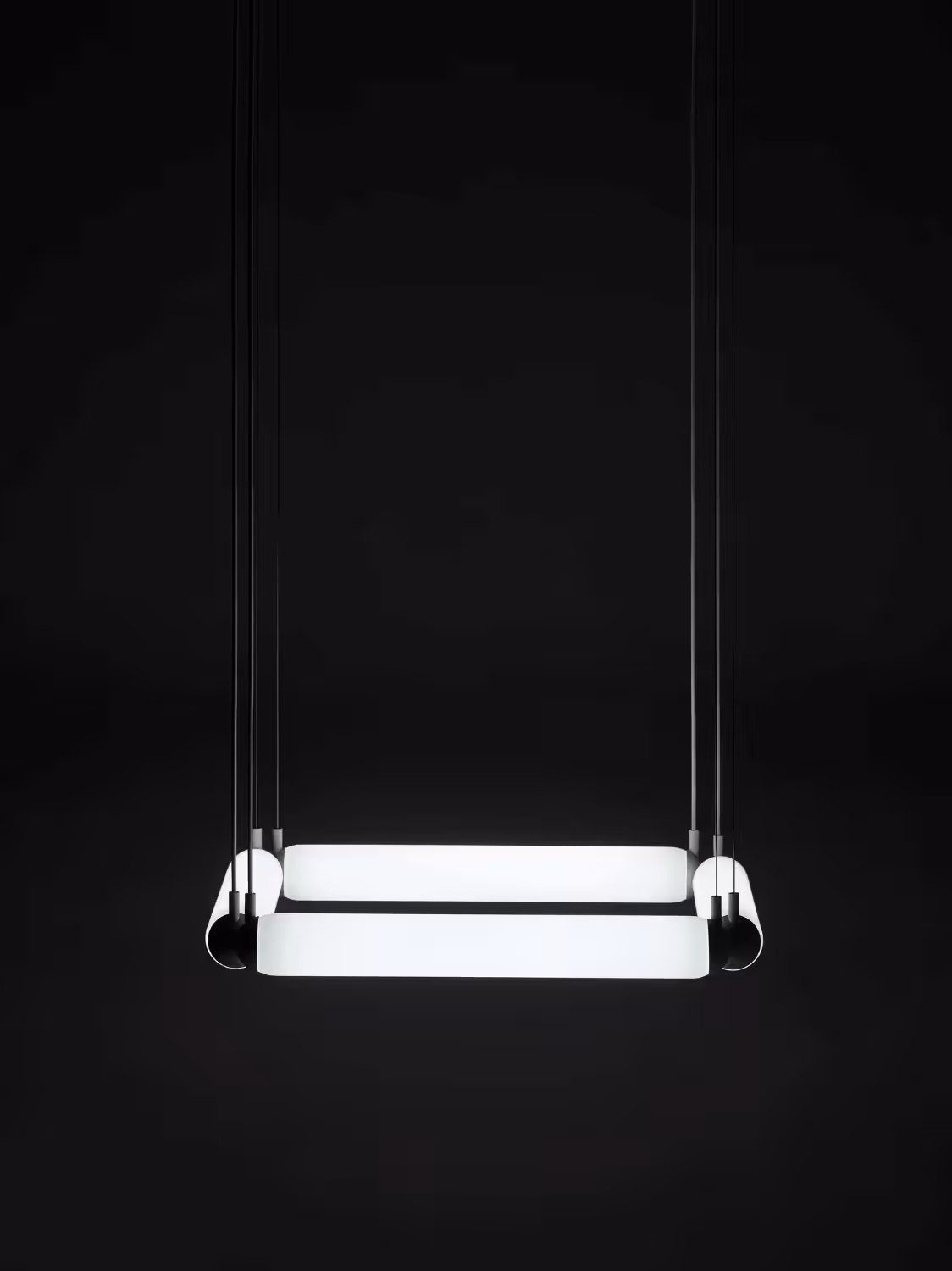 Puro is a boldly minimalistic variation on atmospheric pendant lights. Inspiration for the collection and its name come from the Spanish word for “cigar”, which also means “pure” and is a reference to the composition’s clean lines.