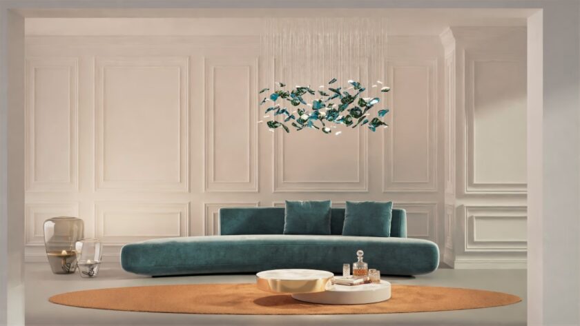 Inspired by nature’s most delicate moments, its organic shapes evoke the serene movement of autumn leaves or flower petals drifting through the air. The remarkable qualities of the material ensure that no two segments are alike, making each one a unique work of art. The diverse forms, sizes, and arrangements of the glass shard offer endless creative possibilities.