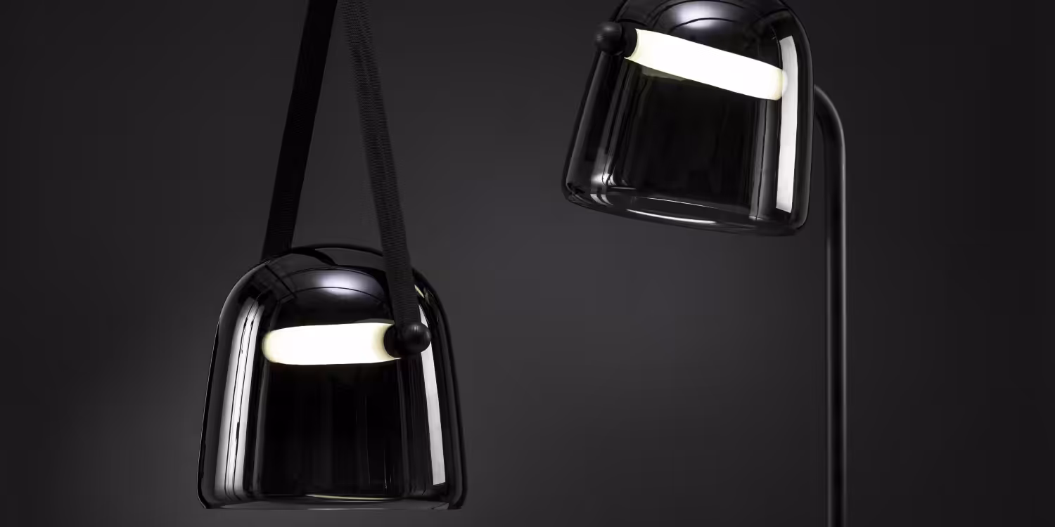 The Mona collection is based on the concept of penetrating forms. The light source boldly traverses the ample volume of smooth handblown glass to reveal the thrilling tension inherent in the design.