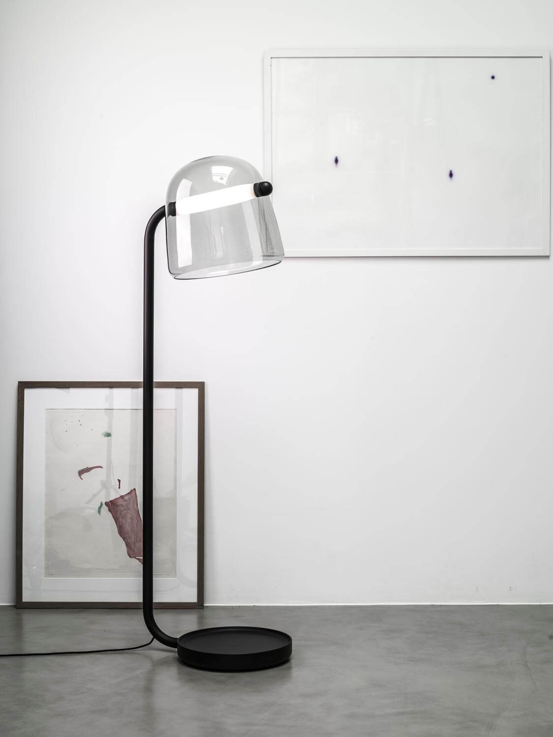 The entire Mona collection has been technologically improved with innovative connectors and the replacement of the wood components with metal ones. These improvements make it easier to change out the light source and clean the lights. The floor variant offers touch dimming.