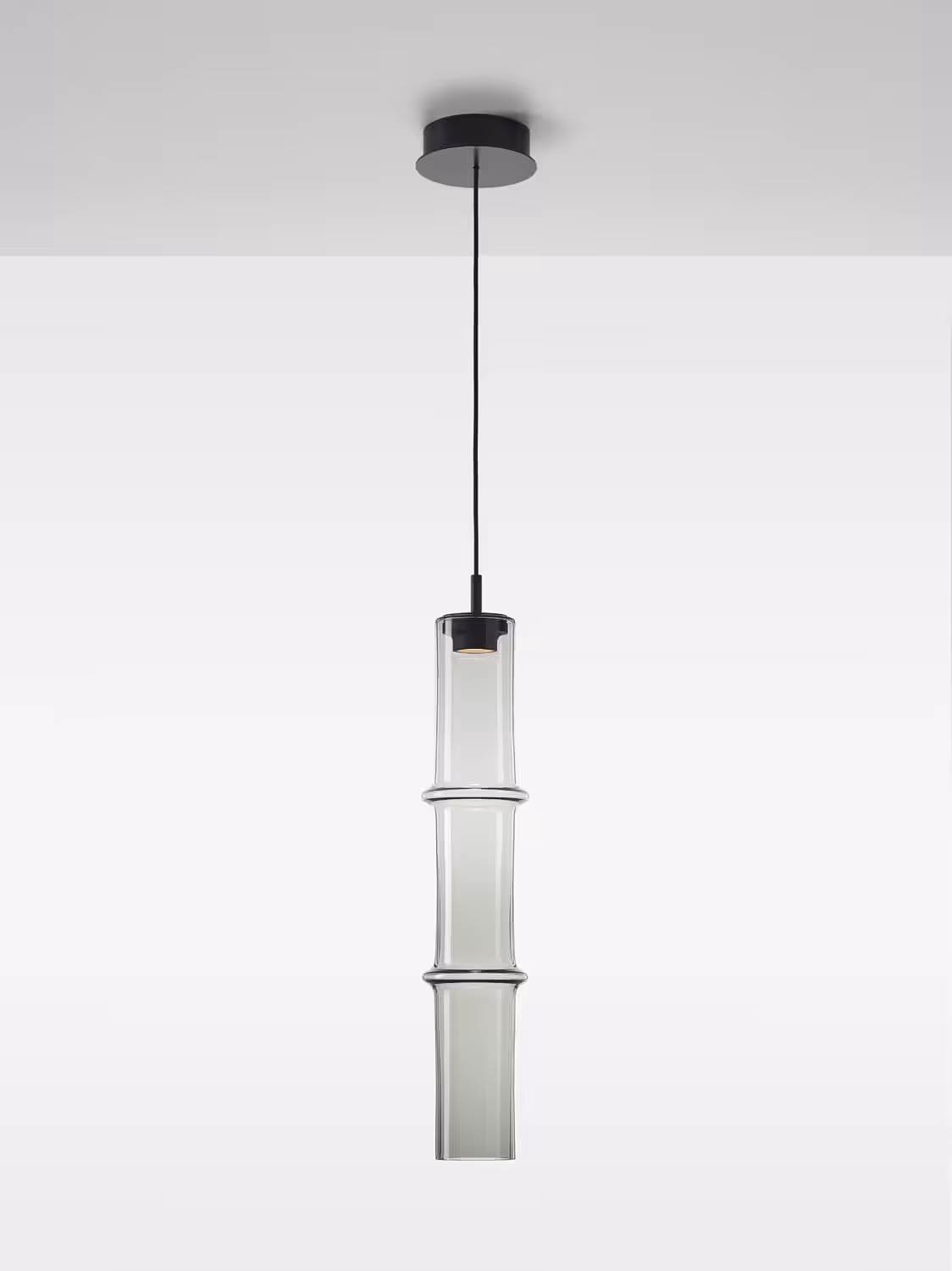 Bamboo Forest draws inspiration from the vertical contours rising up in stands of bamboo. Conceived to evoke a unique atmospheric ambience, the handsculpted glass forms a bamboo stalk complete with the typical nodal ring, where the material thickens, creating a soft accent in the form of subtle shadows.