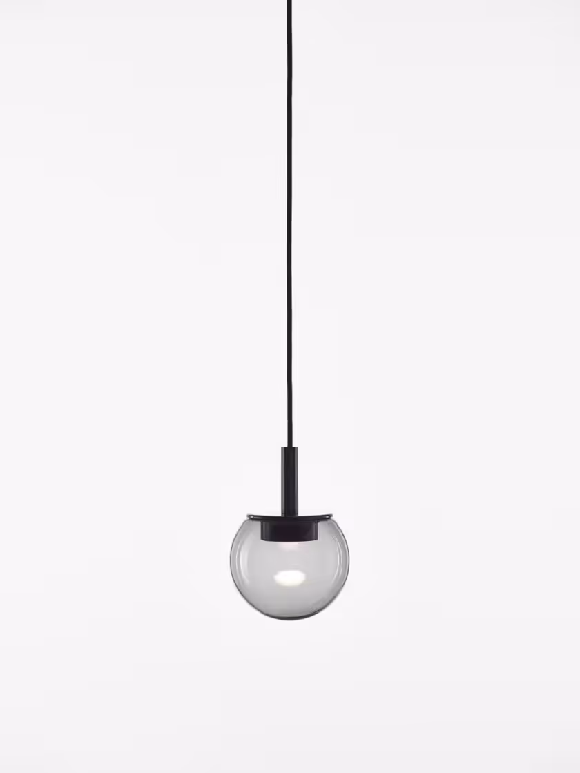 Additional variability is provided by a choice of smoke glass, with the metal fixture finished in a powder coating that underscores the gloss of the transparent glass. These refined components come together to create an unmistakable interior charm well suited to large restaurant and hotel spaces as well as intimate private interiors.