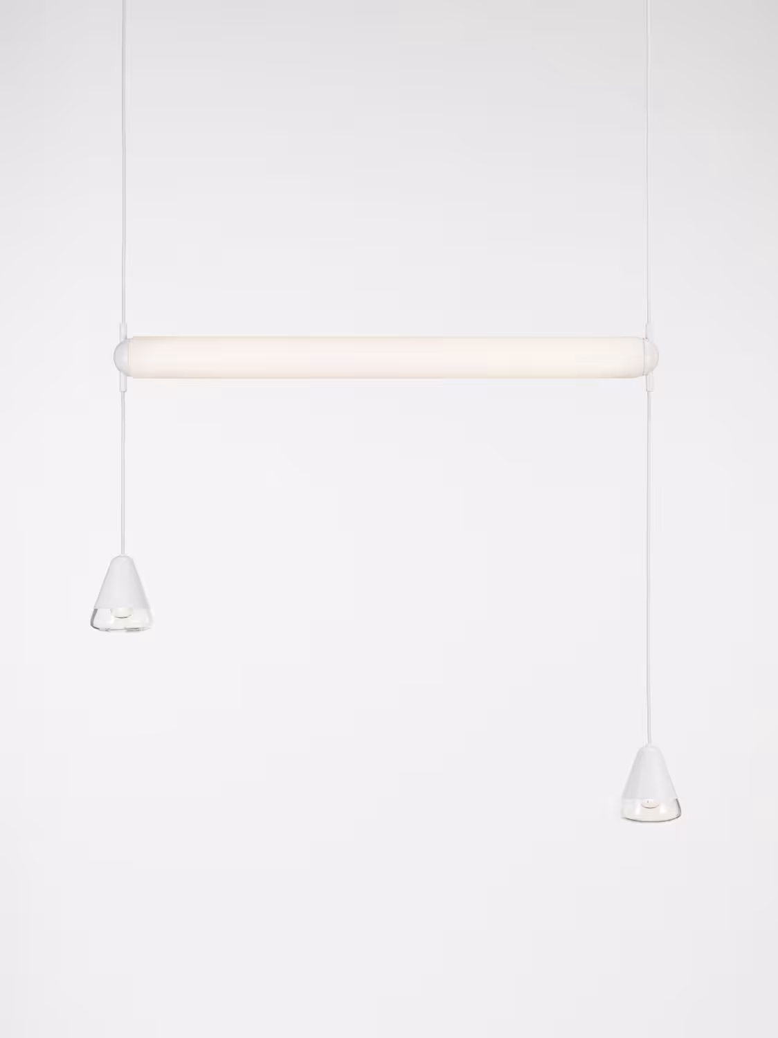 The diffused glow of the Puro Single Horizontal 1000 combines with dual bell lights to elicit a dynamic ambience, while the alternating gloss and matte finishes provide a degree of provocation. When standing alone as single tubes, amazing installations can be created, such as a composition of tubes coupled to a screen dividing space and evoking an intimate atmosphere bordering on scenography.