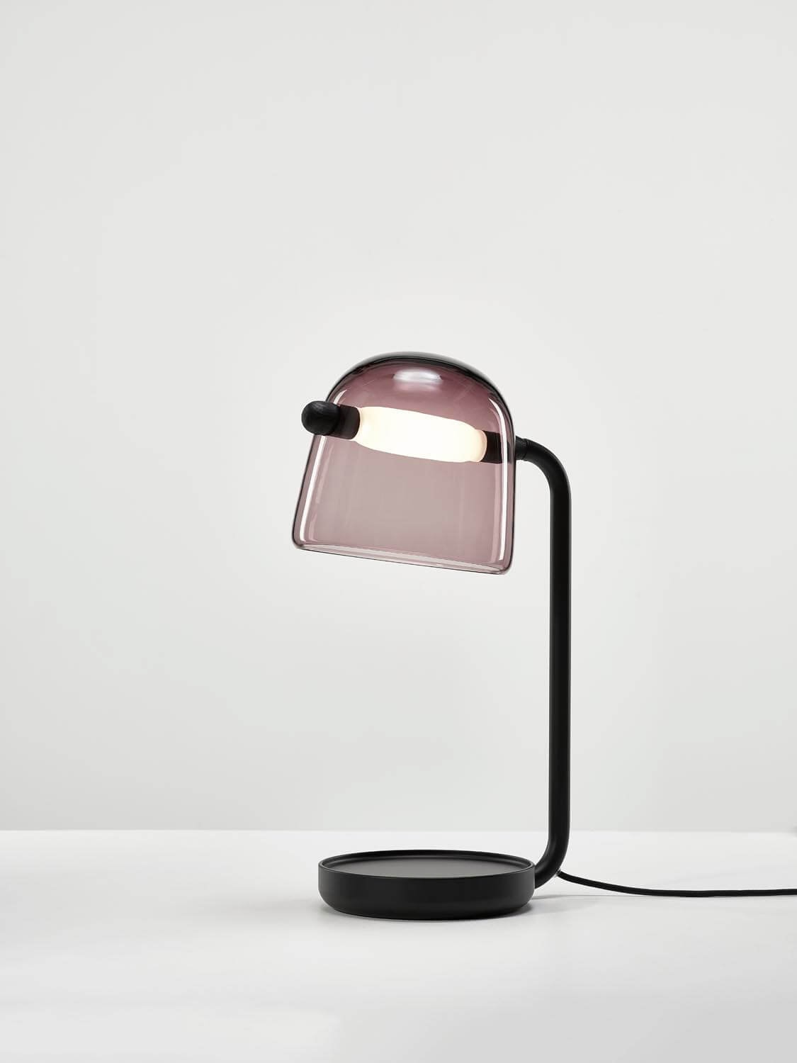 The Mona collection is based on the concept of penetrating forms. The light source boldly traverses the ample volume of smooth handblown glass to reveal the thrilling tension inherent in the design.