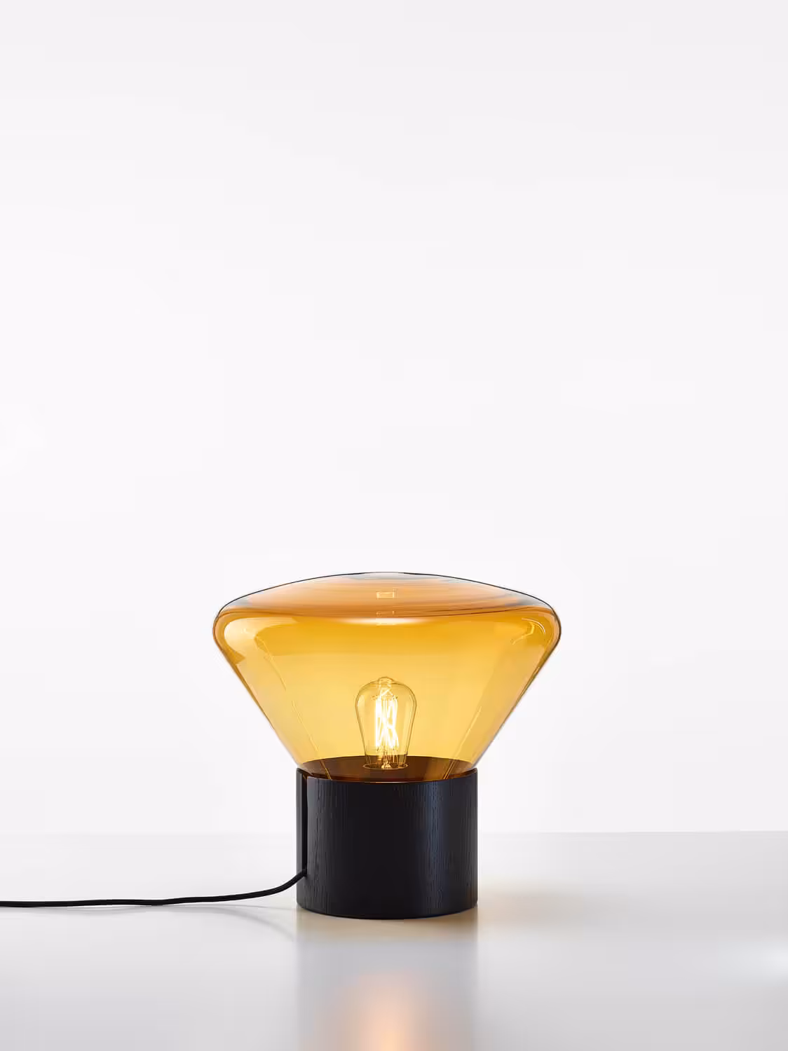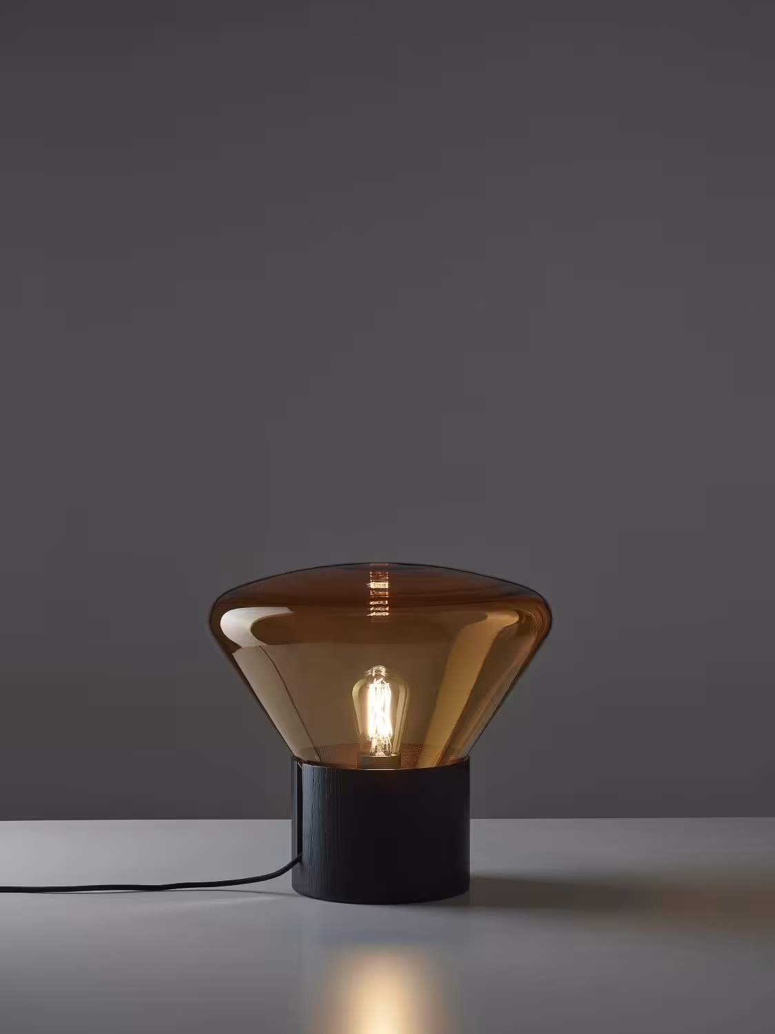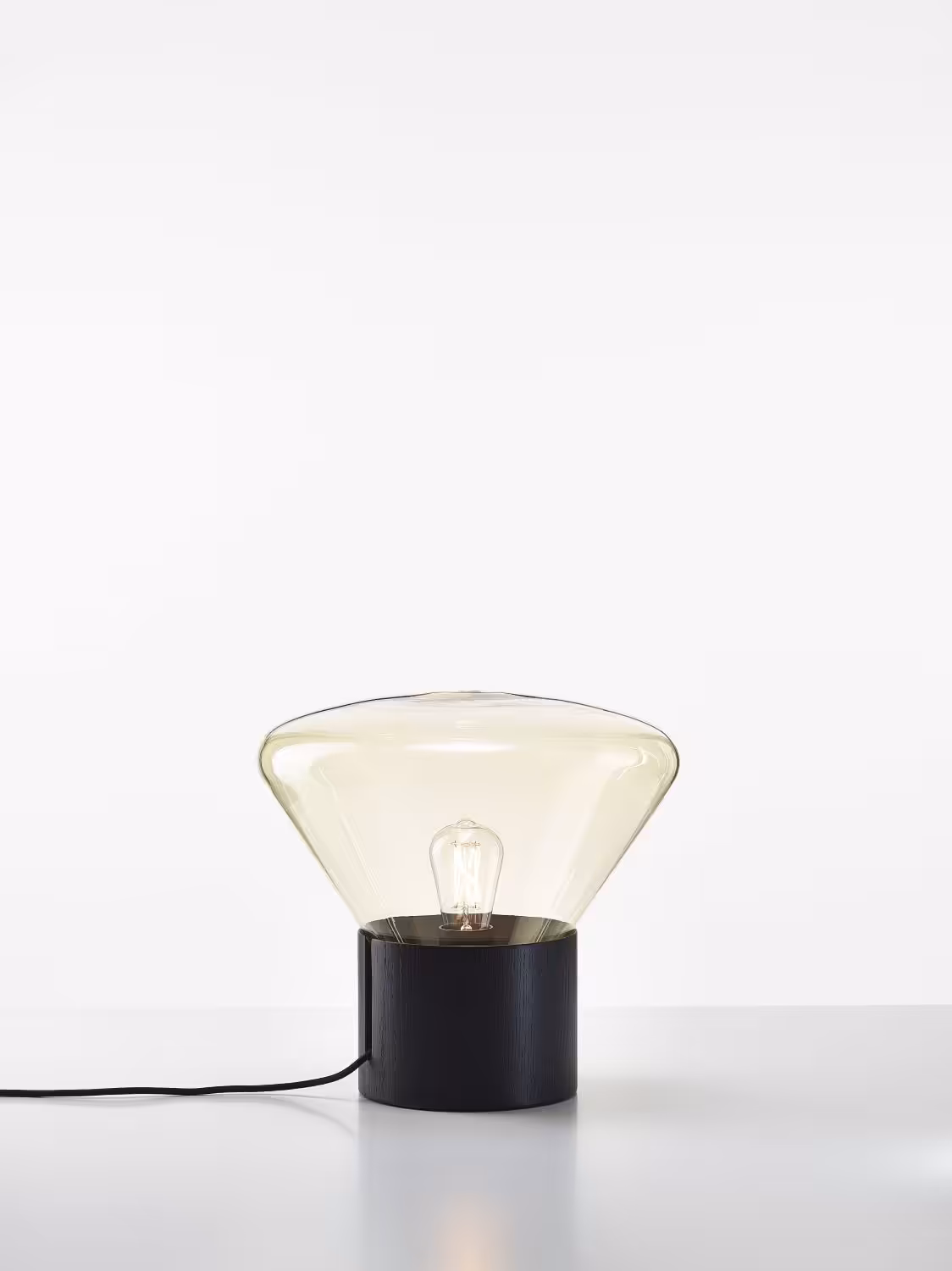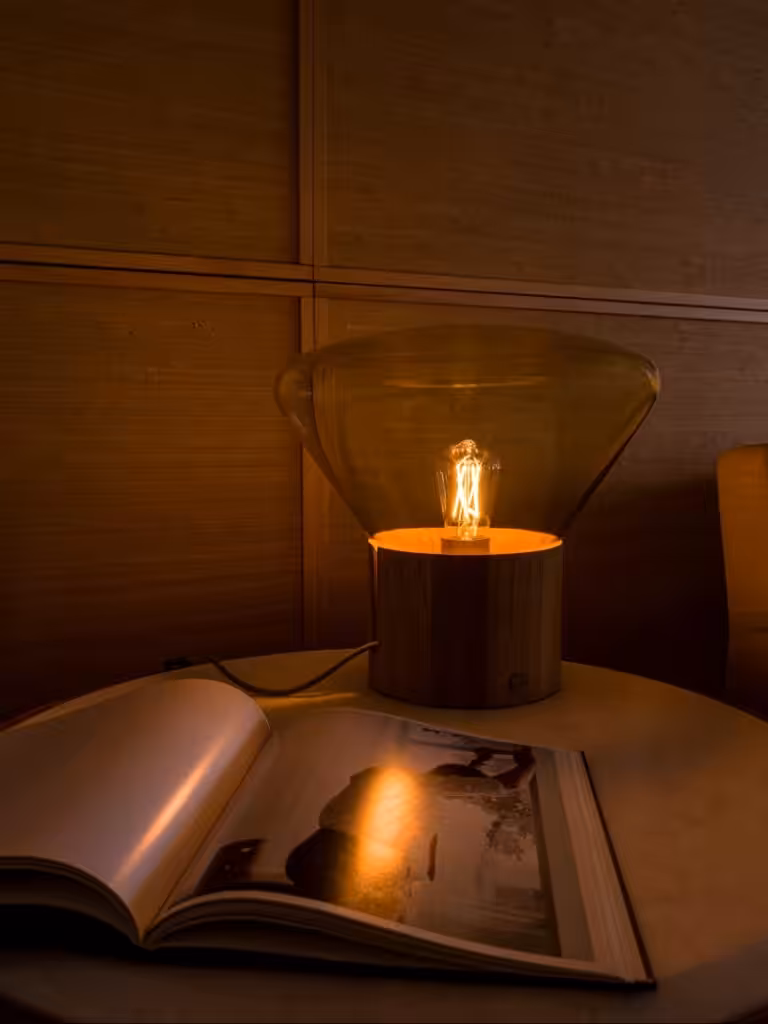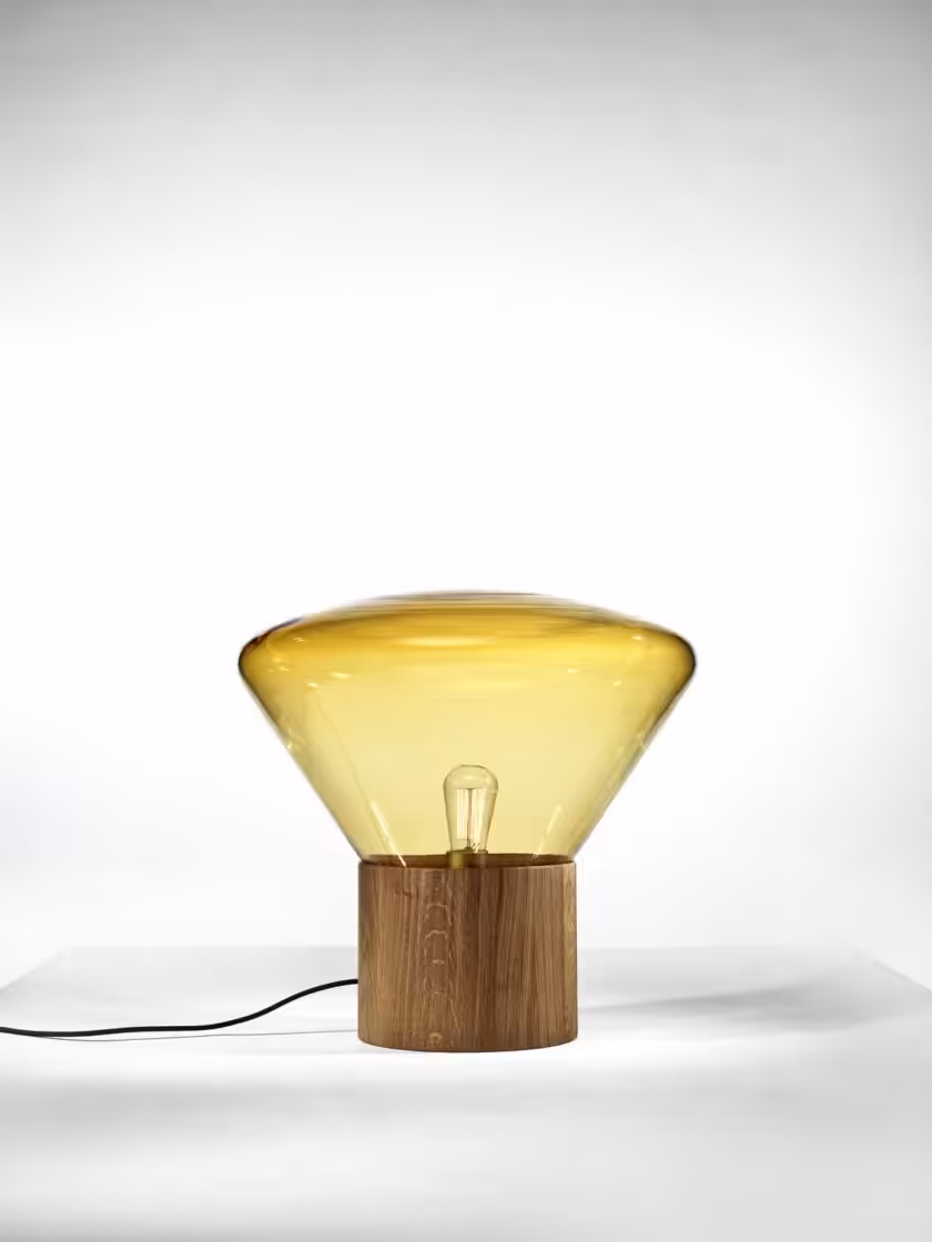 The Muffin Wood 01, features a blowing glass shade set in a handcrafted wood base together with a naked filament bulb, breathe new life into any space and elicit a festive ambience.
