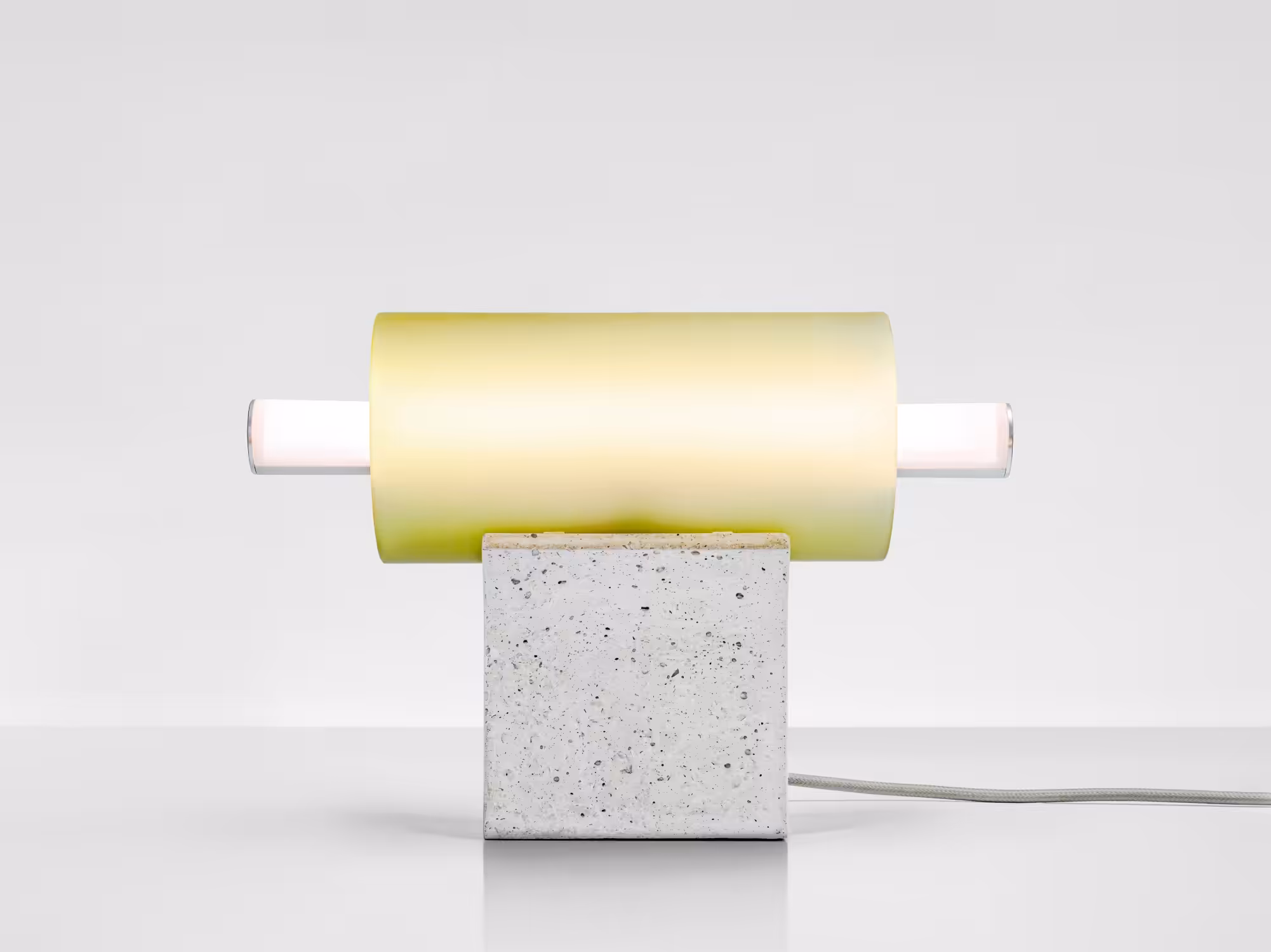 The piece is cast in different rectangular volumes specifically for each type of light, accommodating both simple and multiple assemblies for a remarkable degree of versatility. The centerline matte light tube seemingly levitates inside a delicate sleeve of either frosted or clear glass cradled in the concrete.