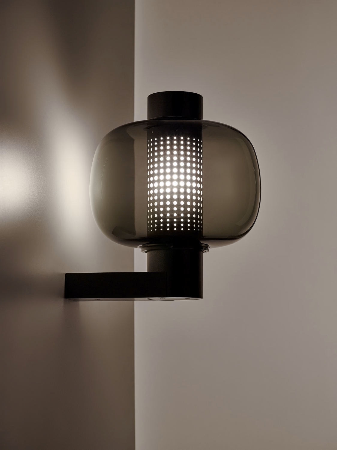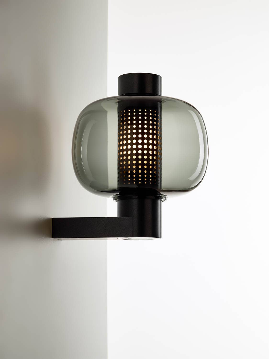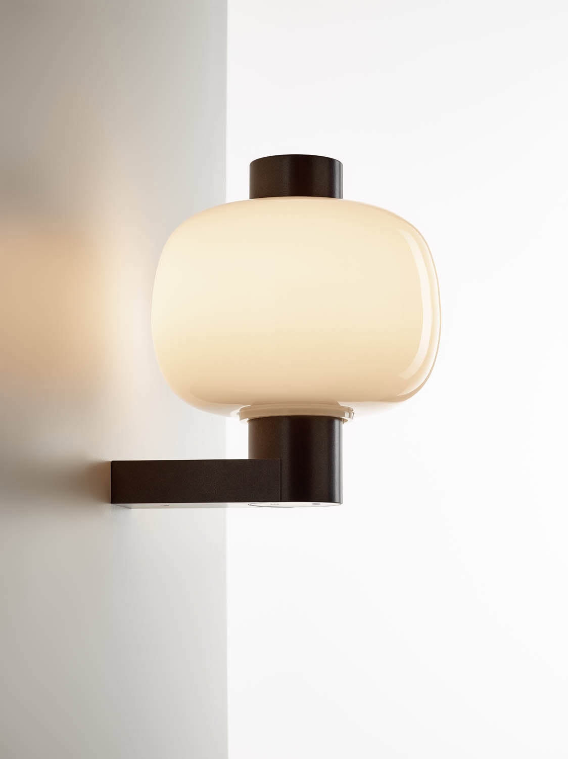 The Bonbori Wall Up meet the IP44 rating for outdoor lighting. The simple stainless-steel body is finished in an environmentally friendly weather-resistant powder coating. The easily removable LED light source, which can withstand below-freezing temperatures, casts a gentle glow through a diffusor and laser-cut openings in the stainless steel. The likeness to the traditional bonbori lamp is achieved with a handblown glass shade, an extraordinary single piece crafted from several layers of carefully formed glass, each of which is thoroughly inspected by the master glassmaker before being blown into the mould.
