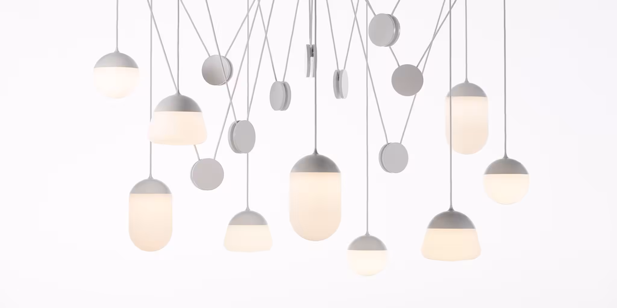 The Planets collection is based on period lights and reflects the daily needs not only of customers but of architects and designers too.l principle, the lights can be variably positioned in diverse arrangements. The use of weights and pulleys makes it possible to quickly adjust the height of the lights, a unique system that allows for several groupings to serve as individual sources of light in an interior, or as multiples of three different (or same) shapes to illuminate larger spaces.