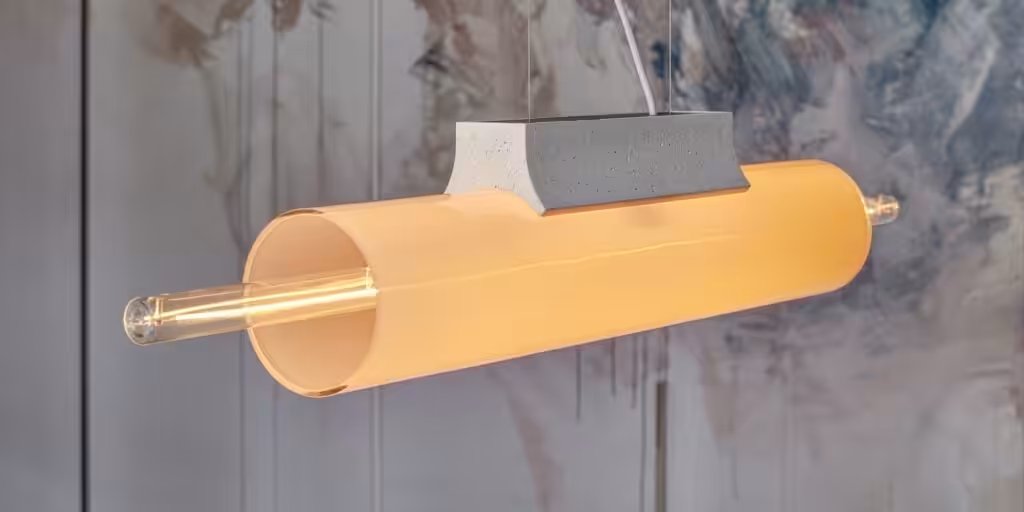 Inspired by architecture, the extravagant Overlay collection by Lucie Koldova, which comprises pendent, wall, and table lights, makes use of overlapping textures. In the concrete base, sand is replaced with remnant glass fragments sand from Janštejn Glassworks. Overlay collection won the special Archiproducts Sustainability Award.