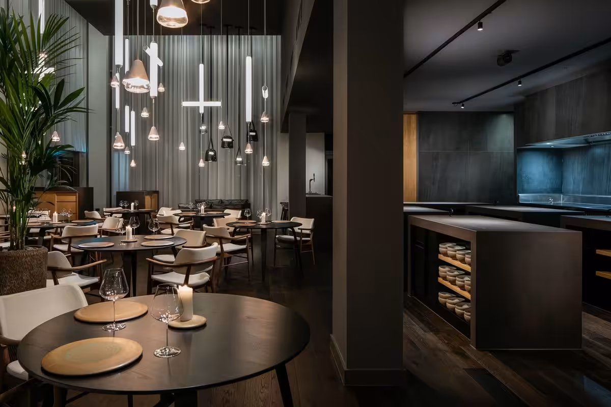 Mana’s new home was selected to let them create a space that is truly their own, giving them, without limitation, the opportunity to provide the experience they’ve always dreamed of. Materials were sourced from around the world and came together in bespoke cabinetry, hand-carved sinks, and elegant interior lighting exclusive to Mana.