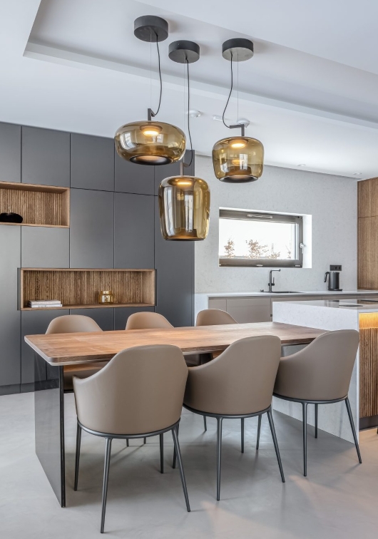 Beyond sculptural beauty lies considered functionality. Through thoughtful features – glass colors that create warmth, dimming systems that respond to mood, materials that age with grace – BROKIS pendants transform dining spaces into atmospheric experiences. Lighting designed not just to illuminate, but to define the moments that matter most.